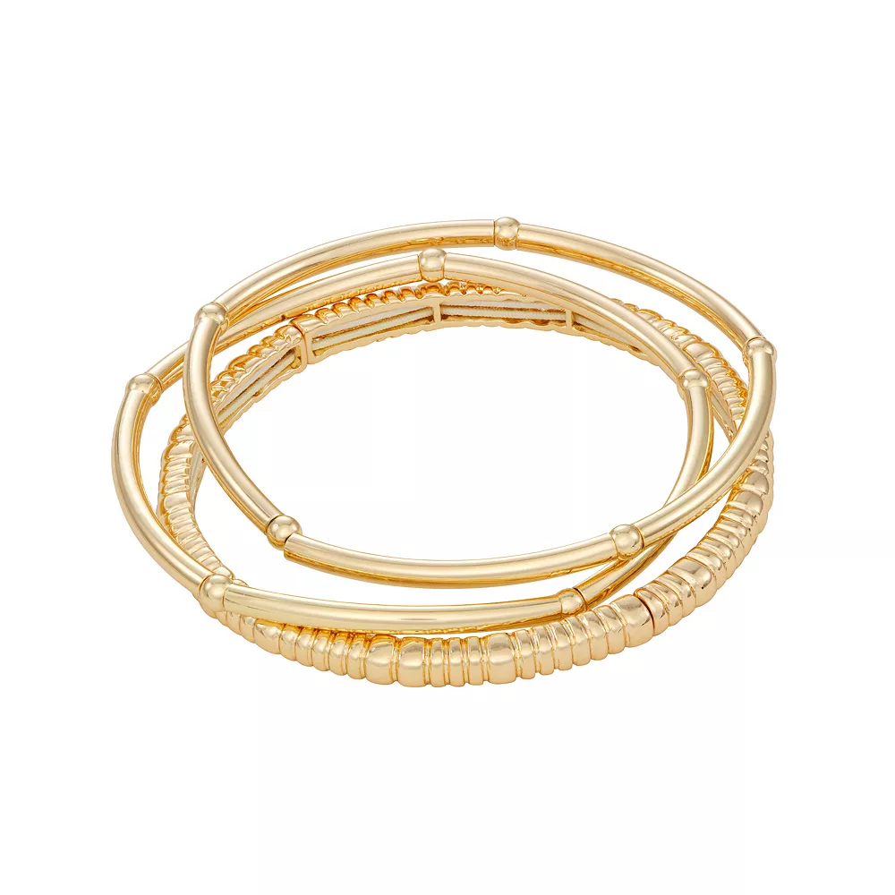 Expand the beauty in your collection with this Nine West Gold Tone 3 Row Stretch Bracelet.