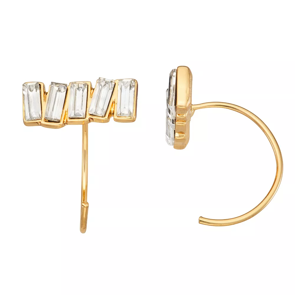 Add a unique touch of sparkle to your wardrobe with these crystal-studded gold tone mini threader earrings from Nine West.