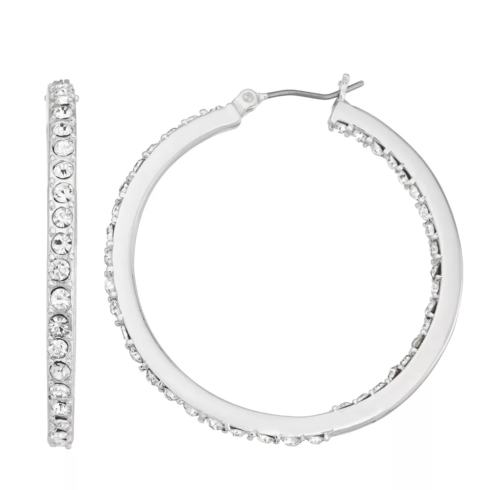 These hoops feature dazzling simulated crystals that will add a sparkling touch to your look.