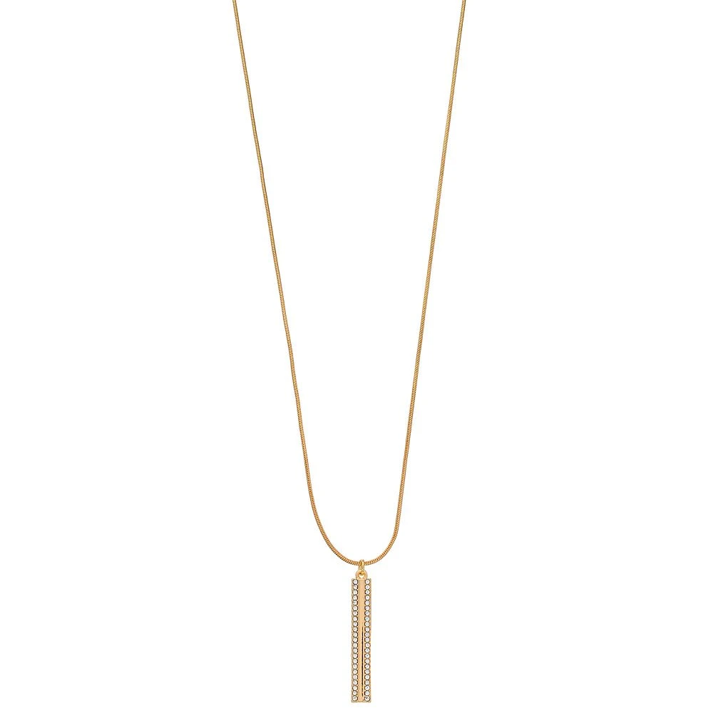 Pave-set crystals lend scintillating shine to this modern stick pendant from Nine West.
