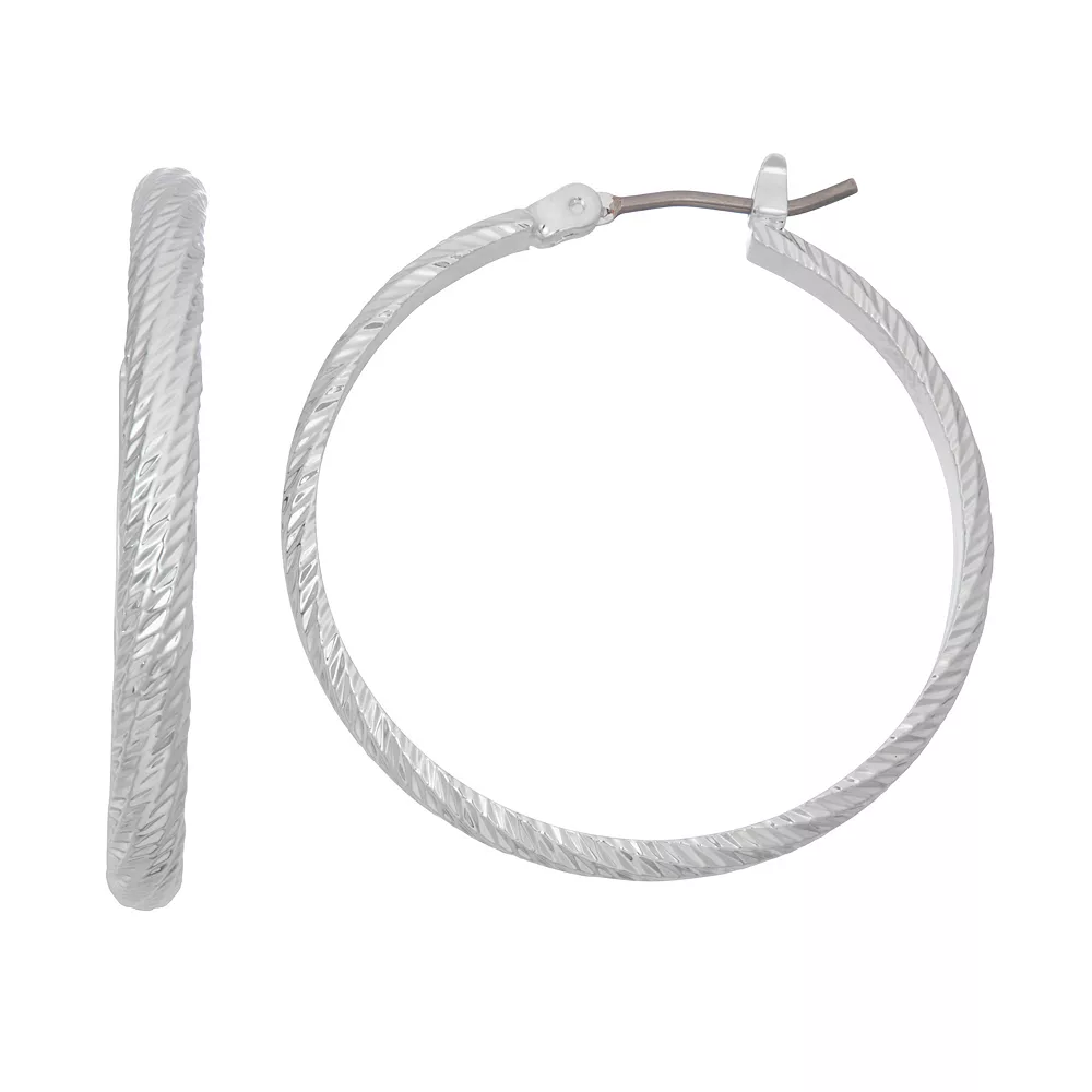 It’ll be your time to shine whenever you wear these Nine West twist hoop earrings.