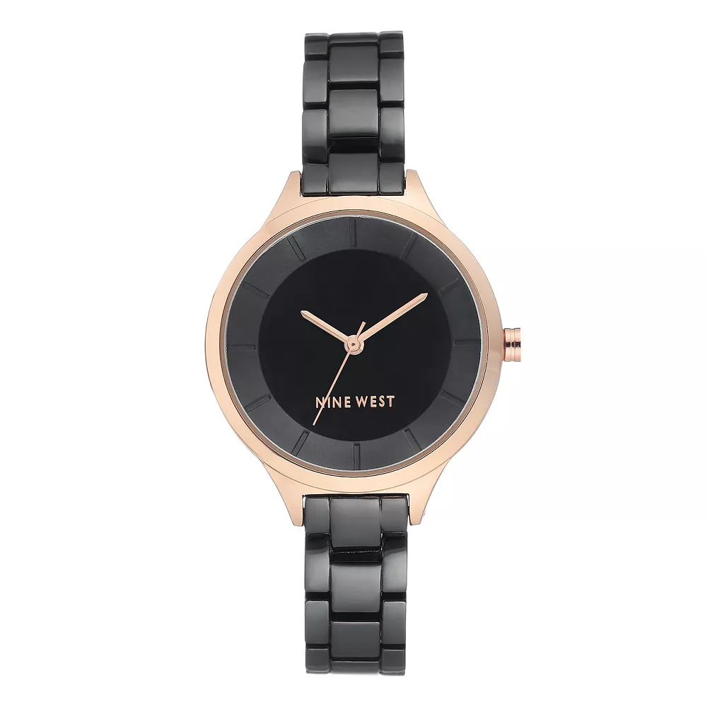 Featuring a rose gold-tone case and a polished black adjustable link bracelet, this women’s Nine West watch adds a chic finishing touch to your look.