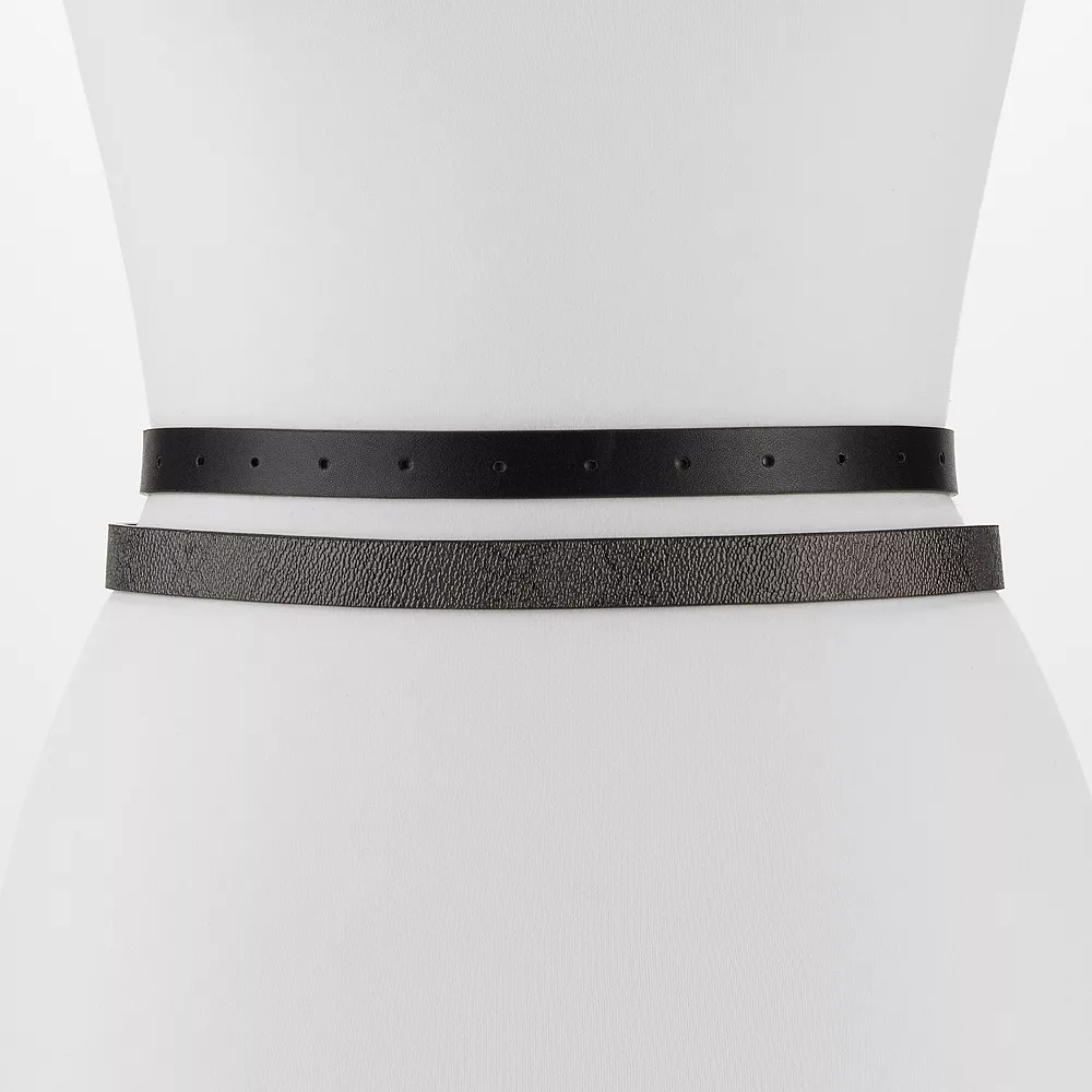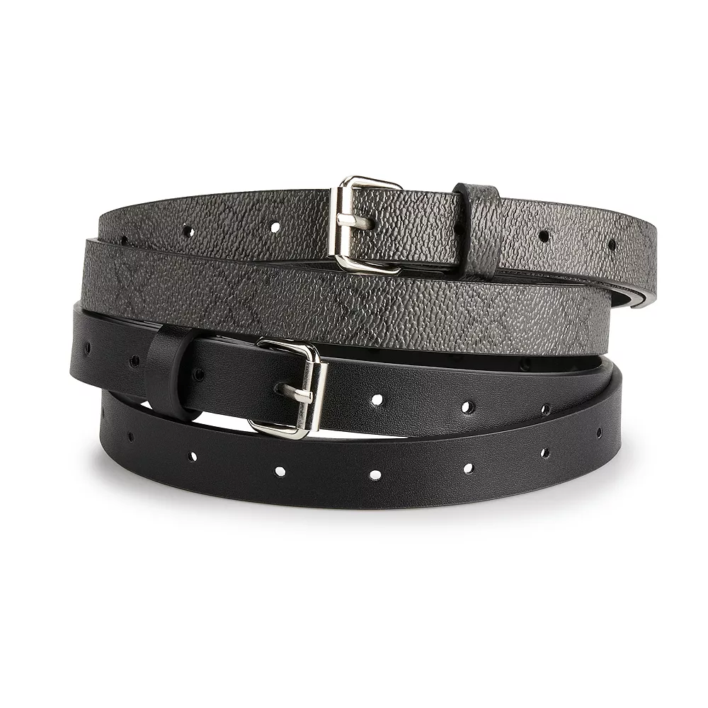 Tie together your next look with this great Nine West 2-for-1 Roller Buckle Logo Belt Set.