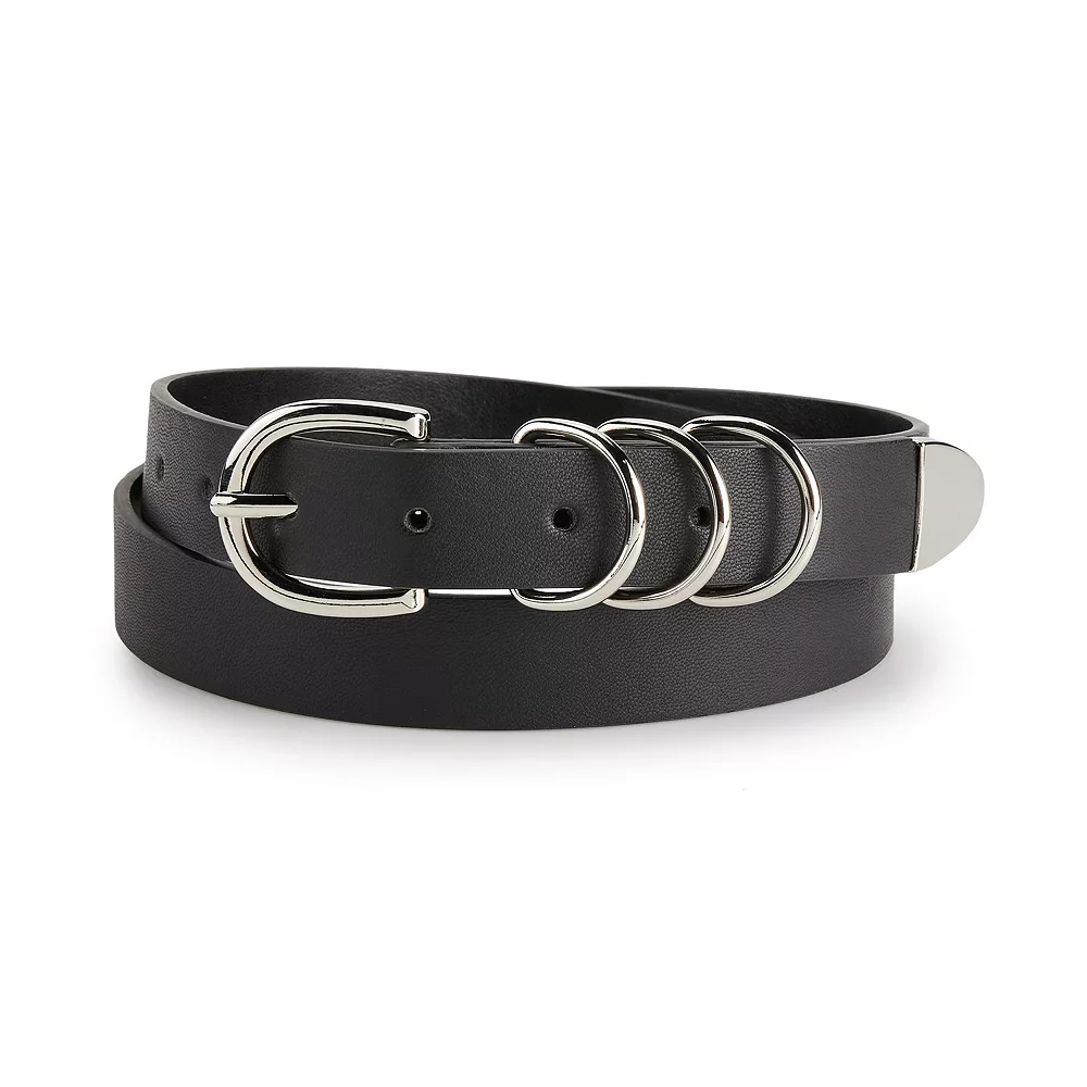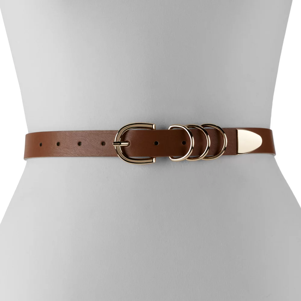 Complete your next look with this beautiful and unique Women’s Nine West Triple D Ring Belt.